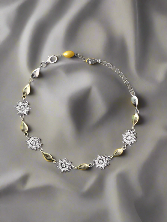 Elegant 92.5 Hallmark Silver Diamond Bracelet with Floral Accents
