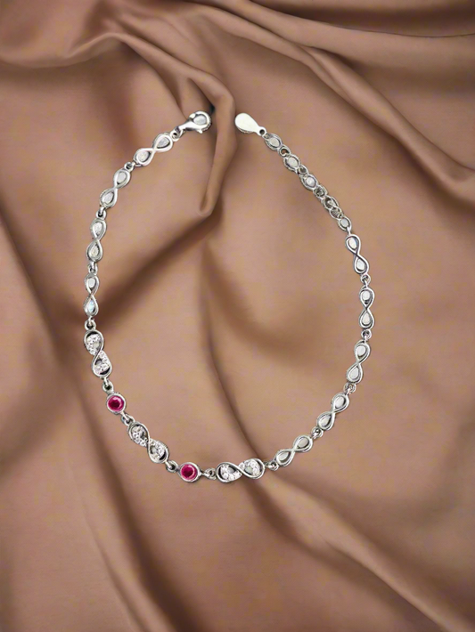 Elegant Silver Infinity Link Bracelet with Ruby Accents for Women
