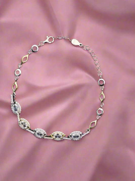 Elegant Oval Gemstone & Accent Bracelet - Sterling Silver & Gold Tone Detail