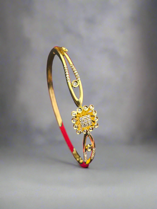 Elegant Gold-Toned Floral Bangle with Crystal Accents