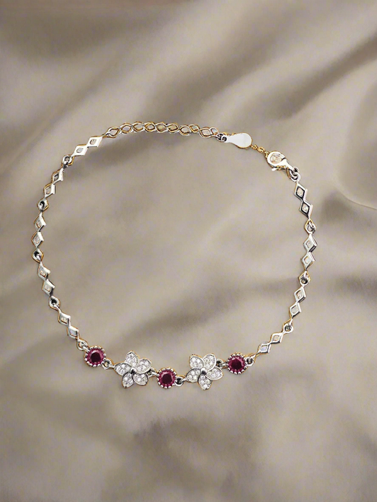 Elegant Floral & Gemstone Silver Bracelet Sparkling Ruby Accents