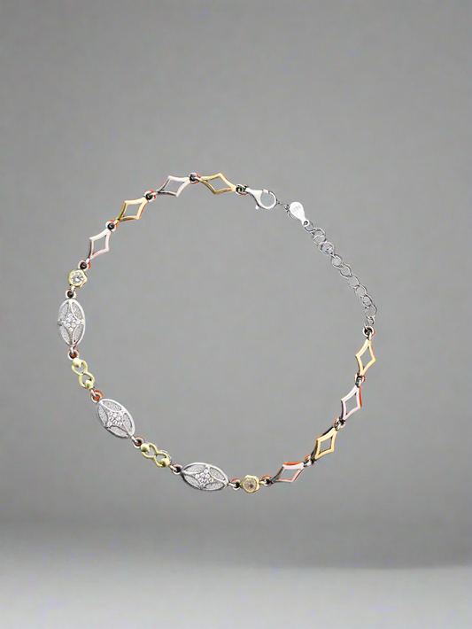 Elegant Two-Tone Geometric Link Bracelet with Cubic Zirconia Accents for Girls