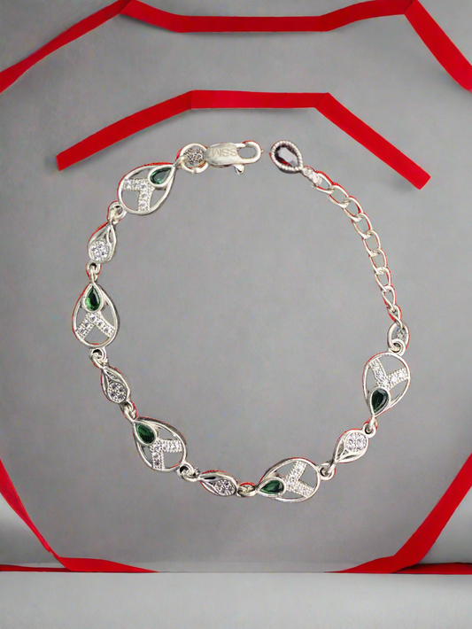 Elegant Sterling Silver Bracelet with Green and White Accents