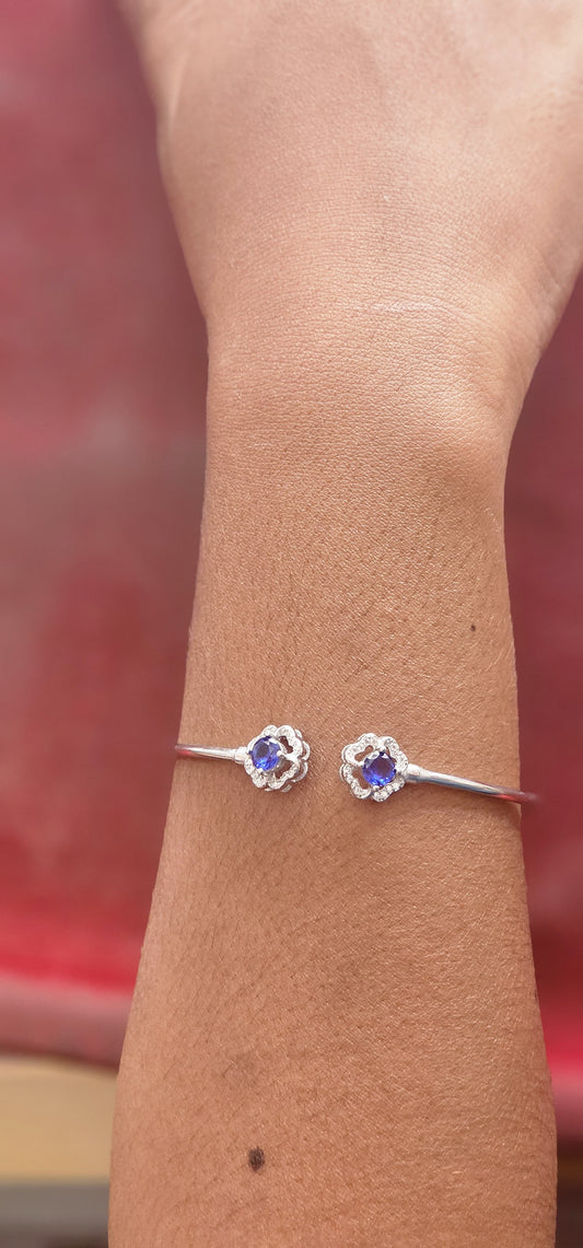Elegant Silver Open Bangle with Blue Sapphire Stones