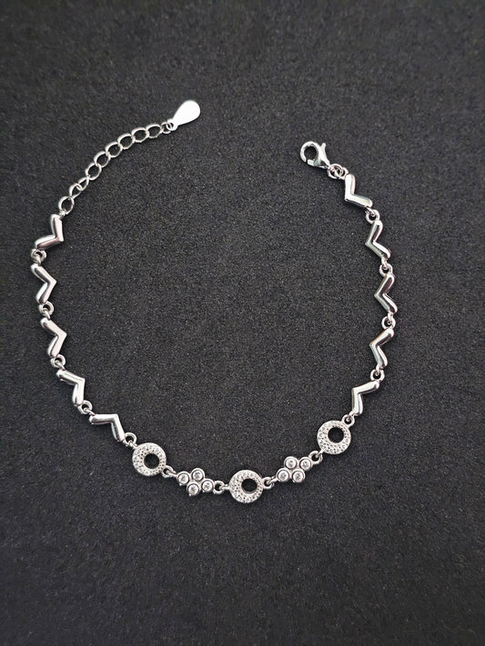 Elegant Sterling Silver Geometric Link Bracelet with Cubic Zirconia Accents