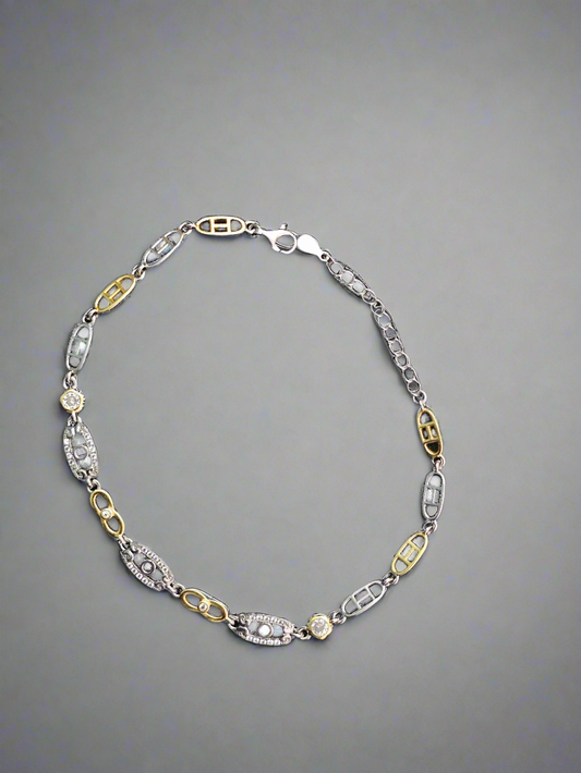 Elegant Sterling Silver & Gold-Tone Chain Bracelet Bi-Color Oval Link Bracelet with Sparkling Design