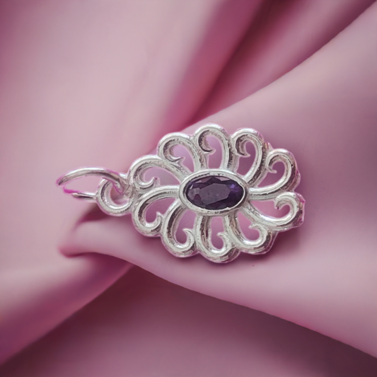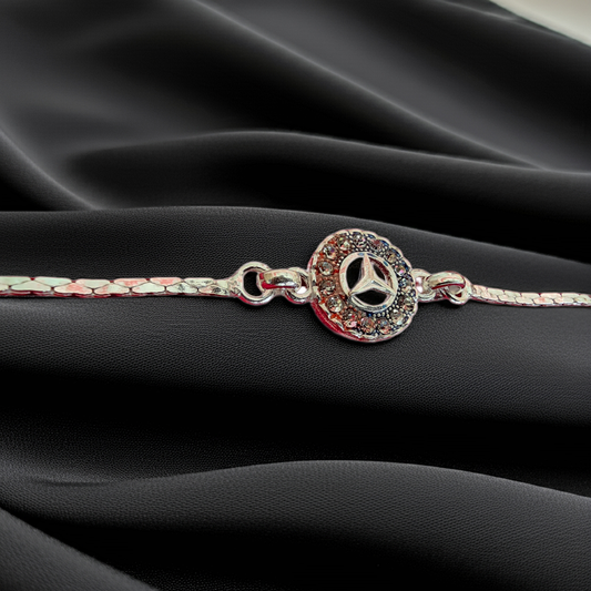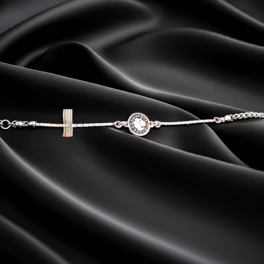Pure Silver Om Bracelet with Stone-Studded Circle