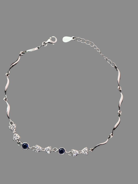 Sparkling Silver Bracelet with Bow Motifs & Blue Accents