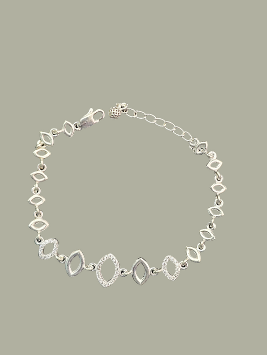 Sterling Silver Link Bracelet with CZ Stone Accents with Open Link Design