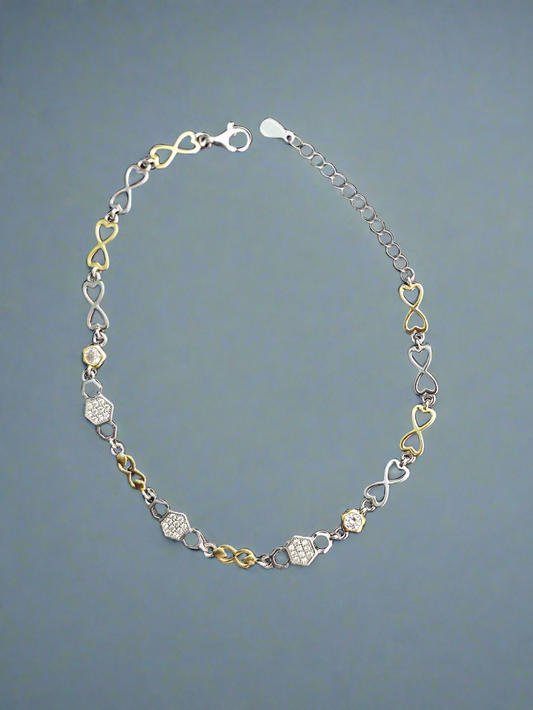 Sterling Silver & Gold-Tone Infinity Link Bracelet with Cubic Zirconia Accents