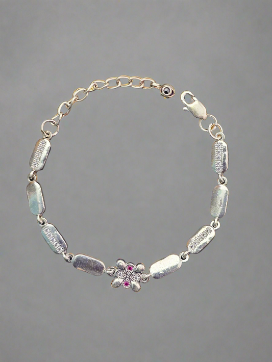 Sterling Silver Charm Bracelet with Floral Accent and Cubic Zirconia Details