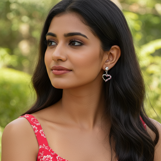 Dainty Pure Sterling Silver Heart Drop Earrings