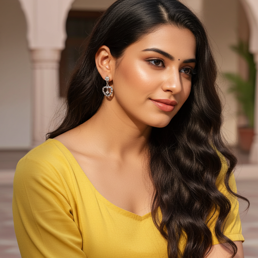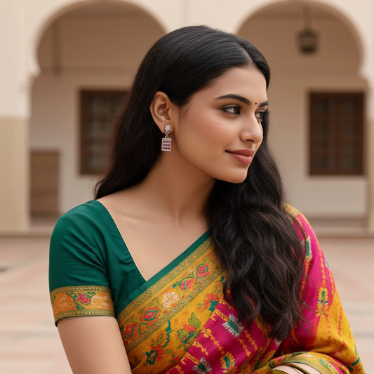 92.5 Pure Sterling Silver Geometric Ruby Drop Earrings
