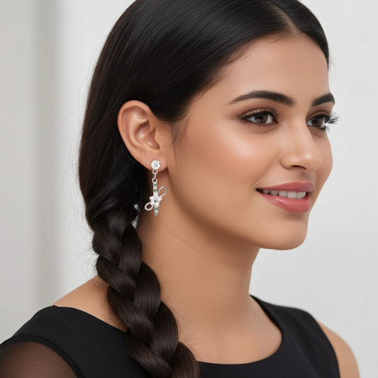 92.5 Pure Sterling Silver Bow & Flower Drop Earrings