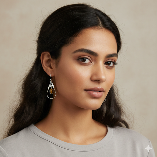 Pure 92.5 Silver Tiger eye Danglers Ear Rings
