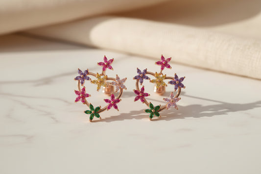92.5 Sterling Silver Rose Gold Floral Heart Stud