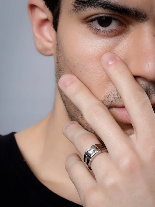 925 Sterling Silver Solitaire Men's Ring with Brilliant CZ Stone – Classic & Elegant Design