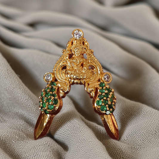 925 Silver Gold Plated Emerald Lakshmi Ring
