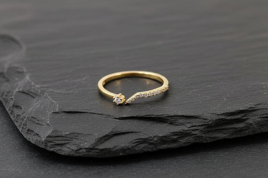 Luxury 92.5 Sterling Silver Gold Coated Floating Solitaire Wave Ring