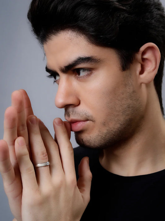 Bold Silver Unisex Band Ring with Geometric CZ Setting