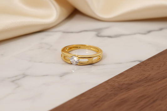 Luxury 92.5 Sterling Silver Gold Coated Bold Solitaire Band