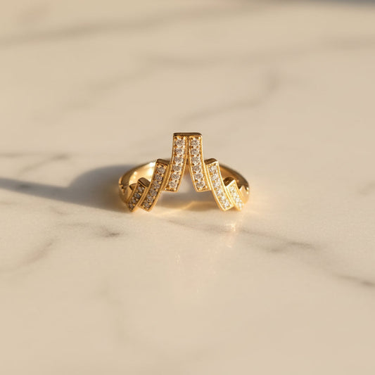Luxury 92.5 Sterling Silver Gold Coated Zig-Zag Pulse Ring