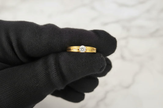 Luxury 92.5 Sterling Silver Gold Coated Linear Ribbed Solitaire Ring