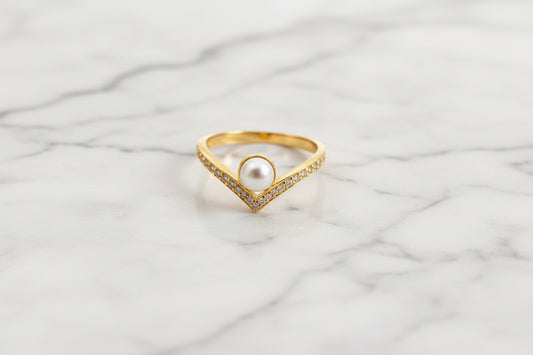 Luxury 92.5 Sterling Silver Gold Coated Pearl & Chevron "Aura" Ring