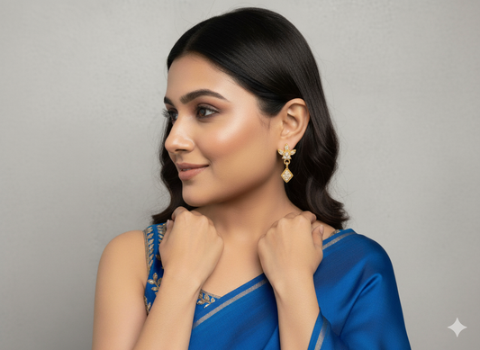 Dazzling Silver with Gold Coated Drop Ear rings with Sparkling Accents