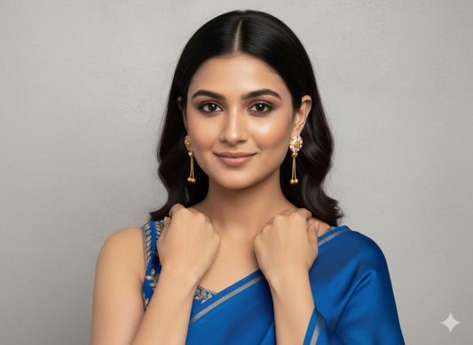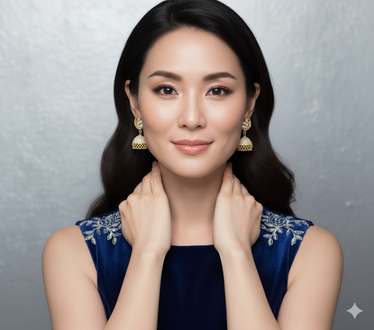 Elegant Gold Tone Jhumka Earrings with Gemstone Accents