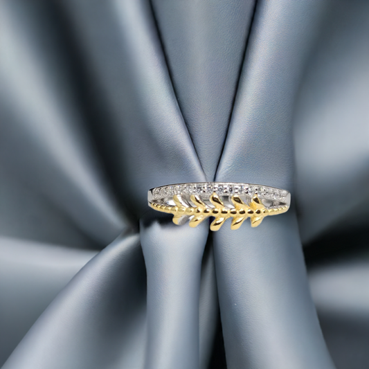 Sterling Silver Heart Ring with Gold Accents & CZ Pave