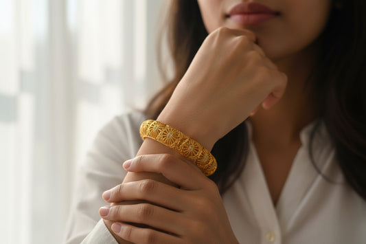 Elegant Gold-Toned Floral Bangle with Crystal Accents