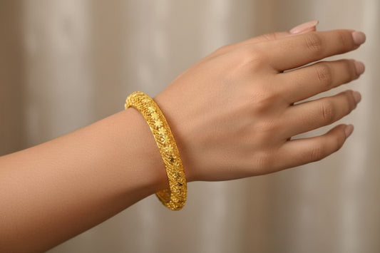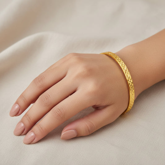 Gold Plated 92.5 Sterling Silver Sleek Diamond-Cut Kada