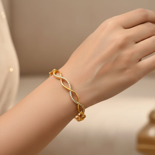 Luxury 92.5 Sterling Silver Gold Plated Infinity Wave Bangle Set