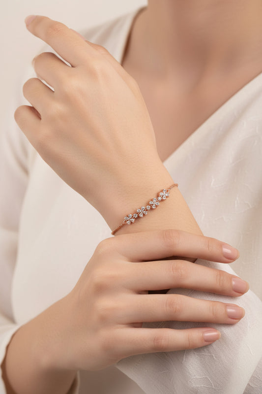 Elegant 92.5 Silver Diamond Bracelet with Floral Accents