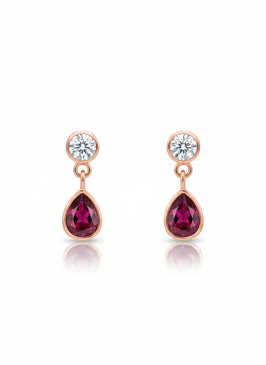 Adorn your décolletage with the exquisite 'Crimson Cascade' Layered Necklace. This stunning piece features a delicate rose gold-toned finish in a fashionable double-strand design. The shorter chain is accented with finely-detailed, bezel-set cubic zirconia (or clear gems), while the longer strand features five mesmerizing ruby-tone teardrop charms that catch the light beautifully. Lightweight and hypoallergenic, this necklace is the perfect blend of modern layering and classic glamour, ideal for elevating any outfit from a simple blouse to a sophisticated evening gown. It secures with a lobster clasp and includes an adjustable extender"