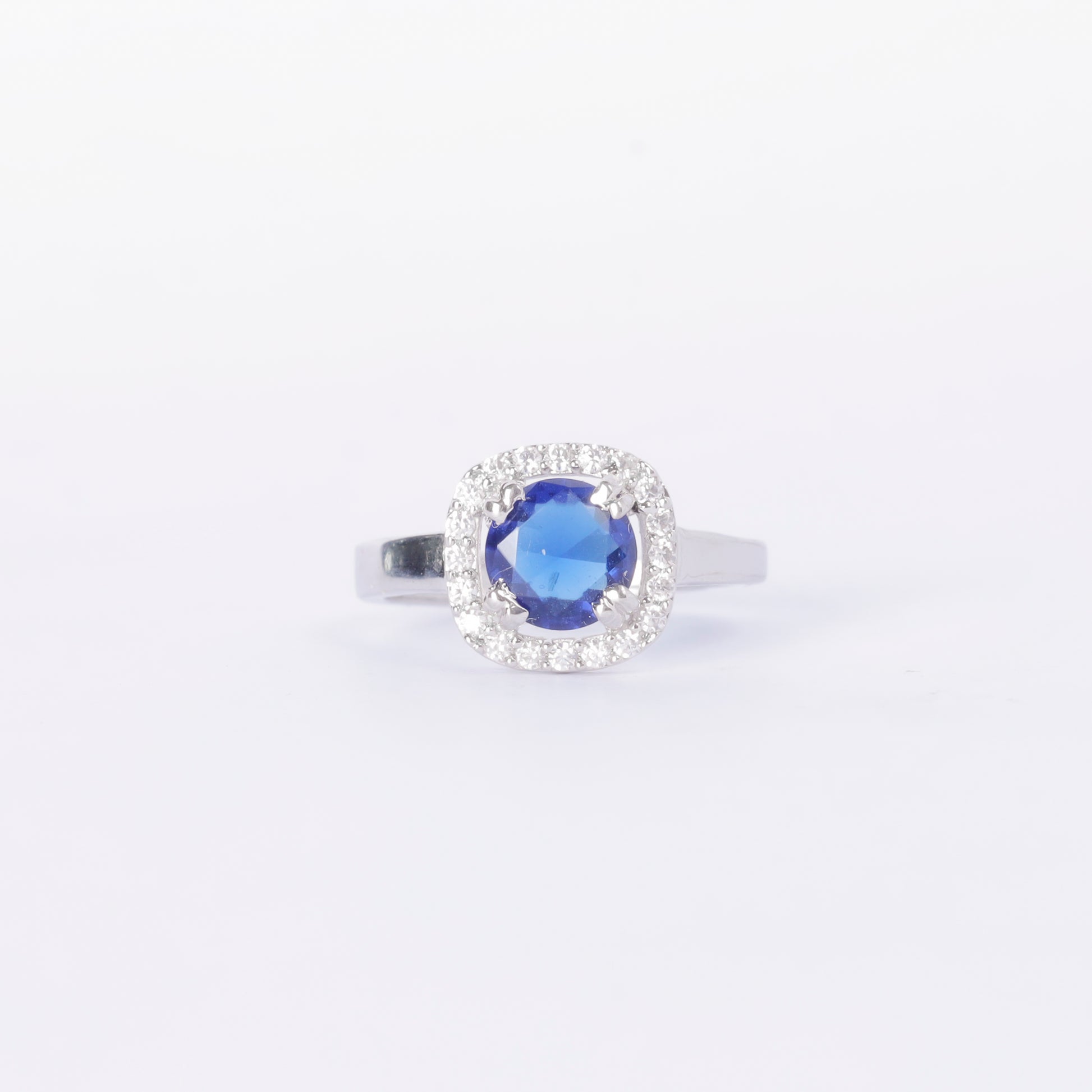 Add timeless elegance to your jewelry collection with this stunning white gold ring featuring a brilliant blue sapphire center stone surrounded by a sparkling halo of natural white stones. Crafted for sophistication and brilliance, this luxury gemstone ring for women is perfect for engagements, anniversaries, or as a statement piece for special occasions.