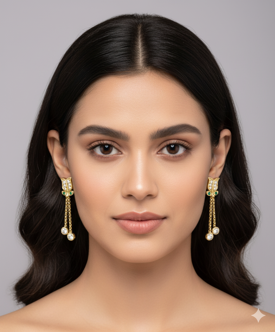 - Double Drop: Each earring has two clear stones at the end of the chain.