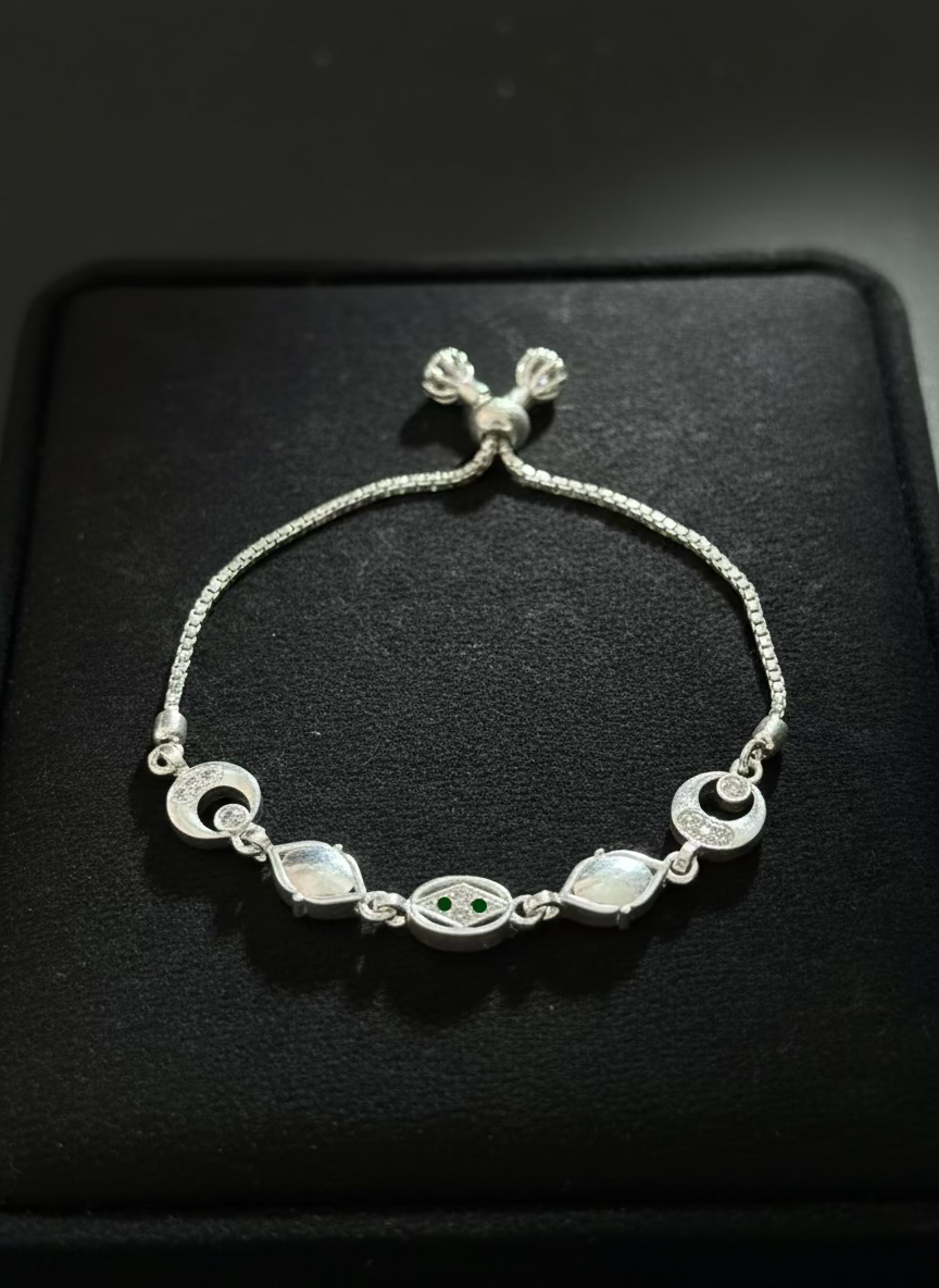 Adorn your wrist with this elegant and dazzling Sterling Silver Adjustable Bolo Bracelet. This piece combines modern design with celestial charm, making it a perfect accessory for both everyday wear and special occasions.